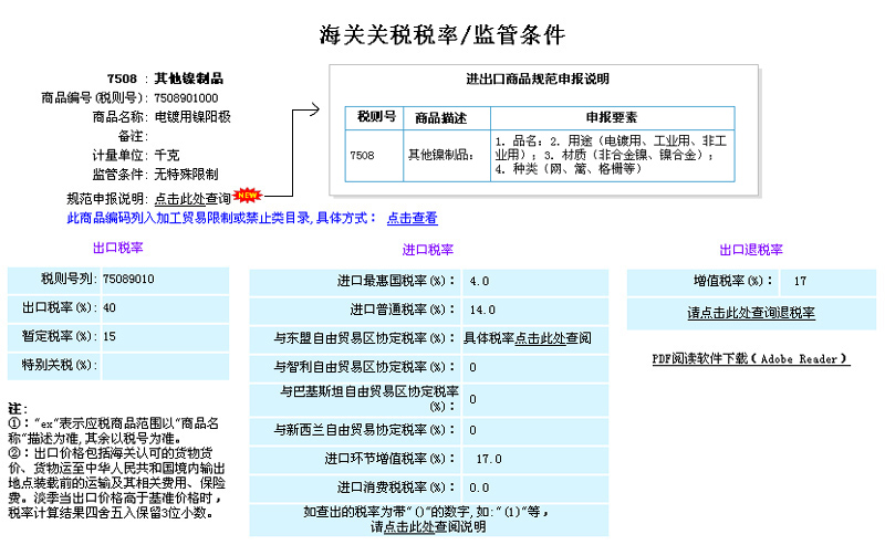 網(wǎng)站的“進(jìn)出口稅率”欄目可查詢商品申報要素