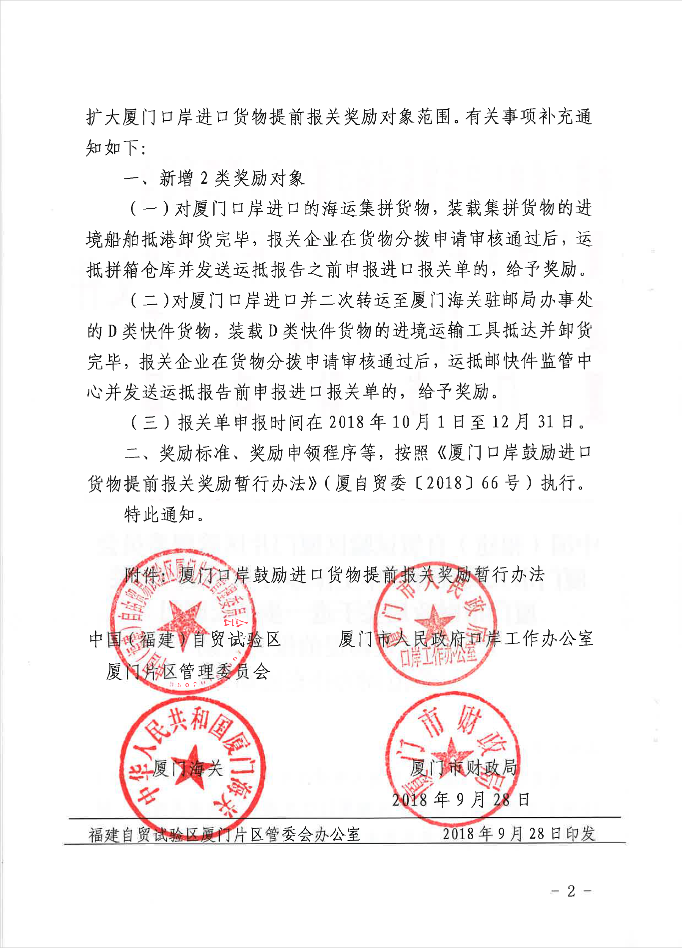 廈門口岸鼓勵(lì)進(jìn)口貨物提前報(bào)關(guān)獎(jiǎng)勵(lì)暫行辦法