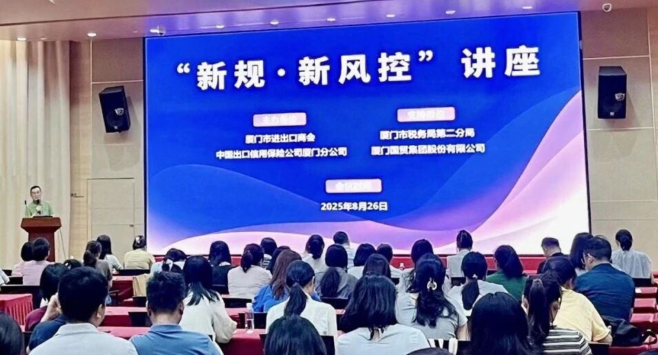 為幫助會員企業(yè)深入理解國家稅務(wù)總局于今年7月發(fā)布的《國家稅務(wù)總局關(guān)于優(yōu)化企業(yè)所得稅預(yù)繳納稅申報有關(guān)事項的公告》,應(yīng)對加征關(guān)稅背景下出口風(fēng)險加劇等新情況,8月26日上午,我會聯(lián)合中國出口信用保險公司廈門分公司成功舉辦“新規(guī)·新風(fēng)控”專題講座。此次活動得到廈門市稅務(wù)局第二分局、廈門國貿(mào)集團(tuán)股份有限公司大力支持,吸引近兩百名會員企業(yè)代表踴躍參會。