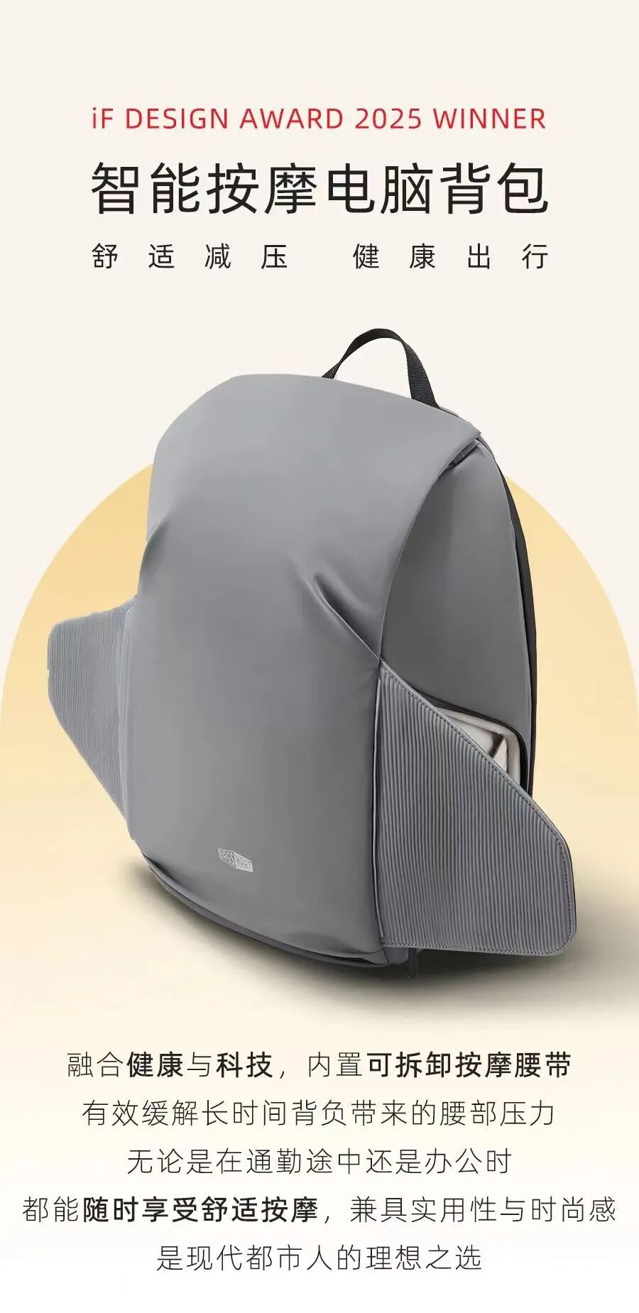 第三期開展首日,央視記者便將鏡頭對準廈門維發(fā)股份有限公司的按摩背包,不僅將其作為亮點展品重點介紹,更給予了專屬特寫鏡頭,讓這款產品在展會伊始就獲得高度關注。這款按摩包目前已斬獲國際獎項IF,也獲得了廣交會CF創(chuàng)新獎銀獎,雙重獎項彰顯出其設計與品質的不俗。這是一款集健康、便捷與科技于一體的智能雙肩背包,專為現(xiàn)代通勤人士設計。背包配備可拆卸的按摩腰帶,通過自帶按摩功能,可有效減輕背負時的腰部壓力,緩解疲勞;用戶可根據通勤、辦公等不同場景自由選擇使用,隨時隨地享受舒適按摩體驗。此外,背包采用立體裁剪工藝,造型時尚新穎,展現(xiàn)了現(xiàn)代風格,巧妙平衡了實用功能與時尚外觀,成為日常出行的理想伴侶。