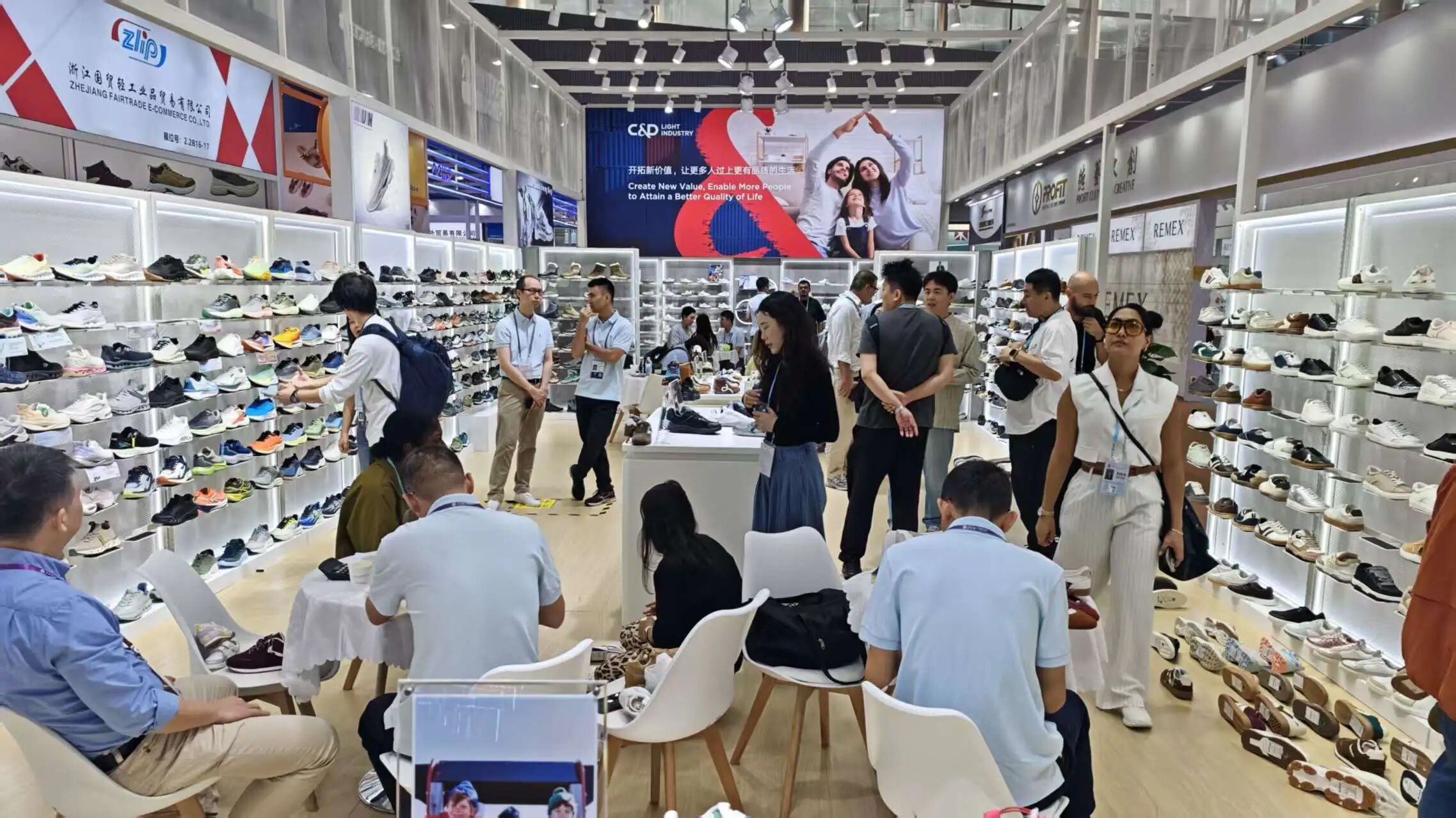 廈門建發(fā)輕工有限公司致力于培育發(fā)展新質生產力,其鞋展位展出的運動系列產品,充分融合了科技與創(chuàng)新。跑鞋選用透氣面料與超輕底料,使單只跑鞋重量低至175克;同時搭載最新的雙密度高彈大底,打造出兼具炫酷外觀與卓越性能的輕跑鞋。在休閑鞋方面,采用環(huán)保再生牛纖絨面料,以實際行動踐行可持續(xù)發(fā)展理念。在AI技術蓬勃發(fā)展的今天,建發(fā)輕工積極運用AI設計工具,打造出多款創(chuàng)新產品系列,持續(xù)推動產品設計的智能化與前瞻性。